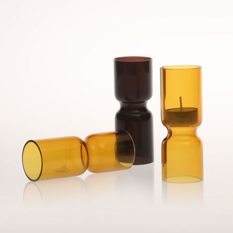 A centrally tapered cylinder that keeps the light in suspension and thus protects it from wind. Through the lower opening, the tea light can be used and then easily inserted and removed. Named After Jean-Marc Schilt, master glassblower in Meisenthal.
